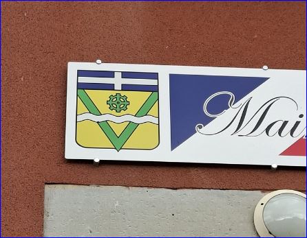 (2001) D'or à l'étai renversé de sinople, à la divise ondée d'argent brochante et surmontée d'une roue de moulin de sinople; au chef d'azur chargé d'une croix d'argent.