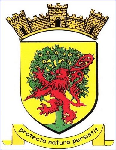 D'or au châtaignier terrassé de sinople, fruité du champ, au lion de gueules portant entre ses pattes antérieures une crosse du même posée en barre, brochant sur le tout.
