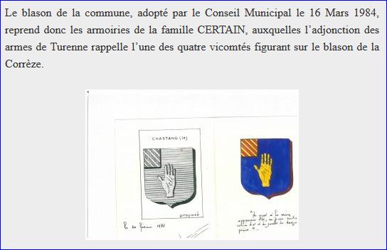 (1984) D'azur à la main dextre appaumée d'or; au franc-canton coticé d'or et de gueules de douze pièces.