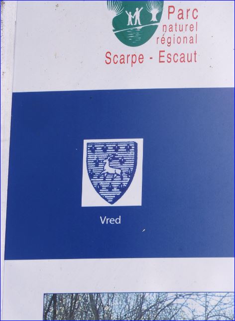 D'azur semé de fleurs de lis d'or, au cerf d'argent passant, brochant sur le tout.