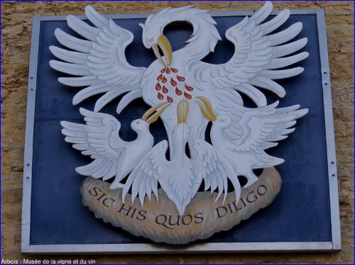 (1493) D'azur au pélican d'argent avec sa piété de gueules, sur son aire d'or.