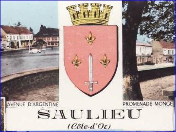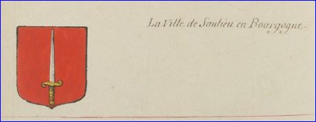 (1595) De gueules à l'épée haute d'argent, garnie d'or, accompagnée de trois fleurs de lis du même, une en chef et deux en flancs.