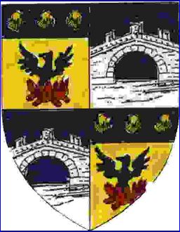 Écartelé: aux 1er et 4e d'or au phénix d'azur sur son immortalité de gueules, au chef d'azur chargé de trois branches de chêne d'or, aux 2e et 3e d'azur au pont à une arche, crénelé de trois pièces, d'argent sur rivière du même mouvant de la pointe.