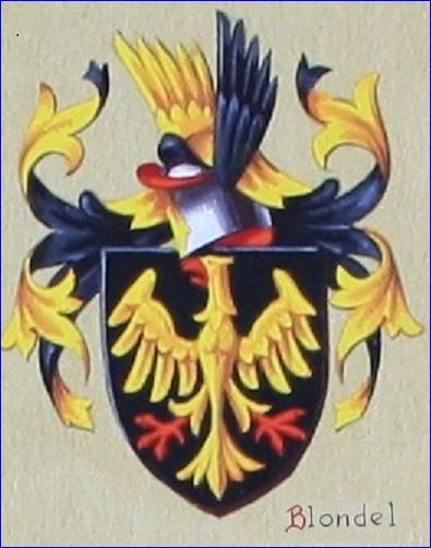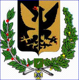 (1996) Parti de sable et d'or, à l'aigle brochant de l'un en l'autre, armée, becquée et languée de gueules.
