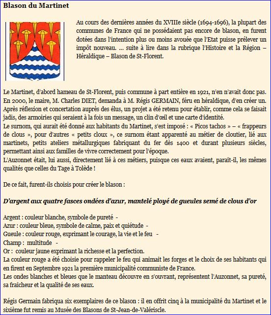 Blason sur le site St Florent d'Hier et d'Aujourd'hui, 2014.