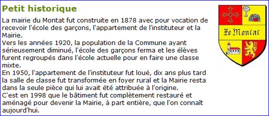 Écartelé: au 1er de gueules à la croix cléchée, vidée et pommetée de douze pièces d'or, au 2e d'or à la gariotte [ou caselle: construction en pierres sèches] d'argent, ouverte de gueules et accompagnée en chef dextre d'un arbre d'argent, au 3e d'or à l'église du lieu d'argent essorée de gueules, au 4e de gueules au lion d'or; à la fasce d'or chargée de l'inscription «Le Montat» en lettre gothiques de sable, brochant sur le coupé.