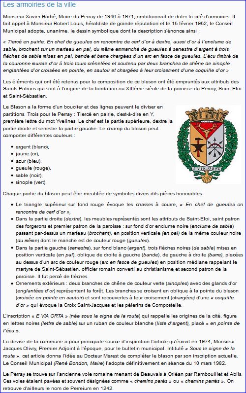 (1952) Tiercé en pairle: au 1er de gueules au rencontre de cerf d'or, au 2e d'or à l'enclume de sable, brochant sur un marteau du même, emmanché de gueules et posé en pal, au 3e d'argent à trois flèches de sable posées en faisceau et chargées d'un arc de gueules posé en fasce.