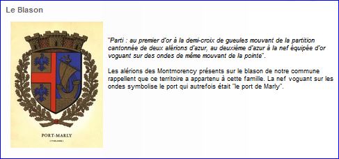 Parti: au 1er mi parti d'or à la croix de gueules cantonnée de quatre alérions d'azur, au 2e d'azur à la nef équipée d'or voguant sur des ondes du même mouvant de la pointe.