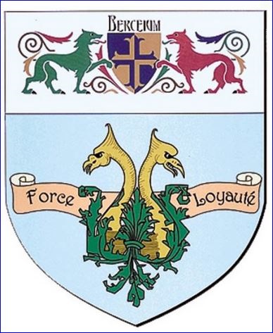 D'azur au listel au naturel, posé en fasce et chargé des inscriptions de sable,"Force" à dextre et "Loyauté" à senestre, à deux cols de griffons adossés d'or mouvant d'un bouquet de trois feuilles de chardon (?) liées de sinople et brochant en coeur; au chef d'argent chargé d'un écusson écartelé d'azur et d'or à la croix fleuronnée brochant de l'un en l'autre, ledit écusson timbré de l'inscription de sable "BERCEIUM" et supporté par deux loups passants de sinople à dextre et de gueules à senestre, l'ensemble agrémenté d'un diapré de gueules à dextre et de sinople à senestre.