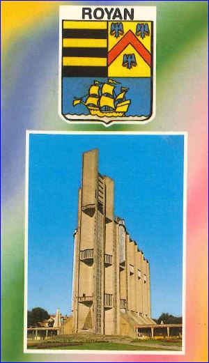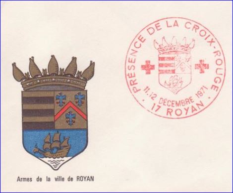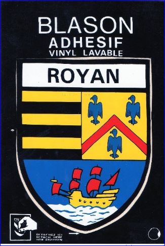 (1964) Coupé: au 1er parti au I fascé d'or et de sable et au II d'or au chevron de gueules accompagné de trois aiglettes d'azur membrées et becquées de gueules, au 2e d'azur au vaisseau d'or voguant sur des ondes d'argent (1952 - de sinople) mouvant de la pointe.
