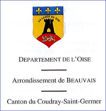 D'or à la tour de sable ouverte du champ, surmontée du nom de la commune en lettres capitales de sable ordonnées en arc de cercle, posée sur un coupeau de gueules chargé d'un léopard d'or; au chef d'azur chargé de trois fleurs de lis d'or.