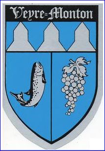 (1986) Parti: au 1er d'azur à la truite contournée en pal d'argent, au 2e d'azur à la grappe de raisin d'argent; le tout sommé d'un chef de vair à trois beffrois.
