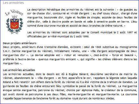 (1897) De gueules au cor de chasse d'or, le pavillon à senestre, lié et virolé d'argent; au chef cousu d'azur chargé d'une marguerite d'argent, boutonnée d'or, tigée et feuillée de sinople, accostée de deux feuilles de chêne d'or celle à dextre posée en bande et celle à senestre posée en barre.