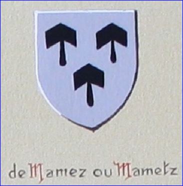 D'or au chevron d'azur accompagné de trois maillets de sable.