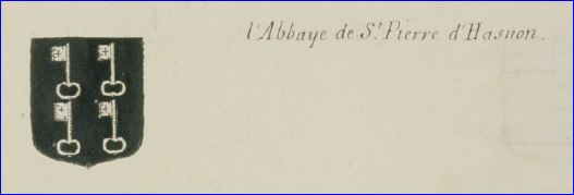 Blason de l'abbaye Saint-Pierre d'Hasnon, ? laquelle appartenait la seigneurie de Leers.