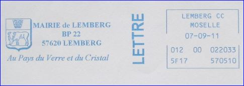 D'azur au cerf d'or buvant dans les flots d'argent; au chef cousu de gueules chargé d'un vase de cristal d'argent.