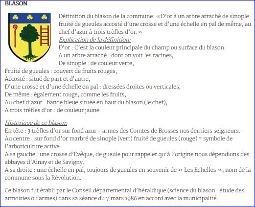 (1986) D'or à l'arbre arraché de sinople fruité de gueules adextré d'une crosse de gueules et senestré d'une échelle en pal du même; au chef d'azur chargé de trois trèfles d'or.