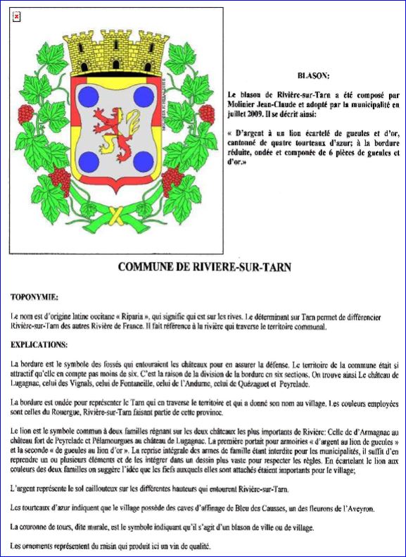 (2009) D'argent au lion écartelé de gueules et d'or, cantonné de quatre tourteaux d'azur; à la bordure réduite, ondée et componée de gueules et d'or de six pièces.
