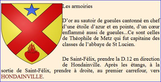 D'or au sautoir de gueules cantonné en chef d'une étoile d'azur et en pointe d'un coeur enflammé de gueules.