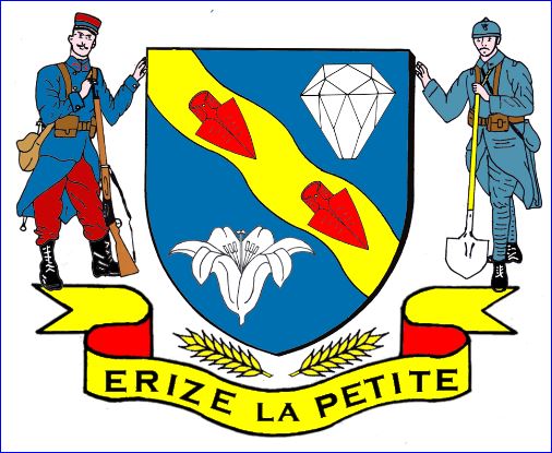 Les deux soldats rappellent qu'Erize la Petite est située sur la voie sacrée Bar le Duc – Verdun. Le soldat en pantalon garance avec son fusil rappelle la violence des combats en 1914 sur le front proche d'Erize la Petite. Le soldat en bleu horizon tenant une pelle souligne que la voie sacrée a vu passer les convois routiers d'hommes, de ravitaillement et de munitions approvisionnant le front et en revenant; munis de pelles et répartis sur tout le parcours, des pionniers du génie et des autres armes remplissaient de pierres calcaires les ornières de la chaussée devant les bandages des camions, afin que la noria de véhicules soit ininterrompue de 1914 à 1918, surtout en 1916.