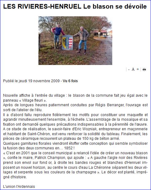 Article de presse L'Union L'Ardennais du 19 novembre 2009.
