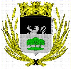 (1999) Coupé: au 1er de sable au lion issant d'argent, au 2e d'argent à trois arbres de sinople sur une terrasse isolée du même.