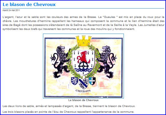 (1991) D'argent à la chèvre de gueules, issant d'une roue de moulin de sable, accompagnée de onze mouchetures d'hermine du même ordonnées en orle, quatre en chef, une en pointe, les autres aux flancs; à la jumelle ondée abaissée d'azur brochant sur le tout.