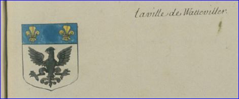 D'argent à l'aigle de sable; au chef d'azur chargé de deux fleurs de lis d'or.