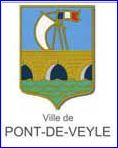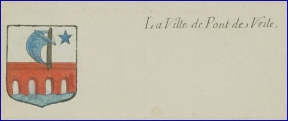 D'azur au pont droit d'or d'une arche et deux demies de sable ombrées d'argent, maçonné de sable, sur une rivière de sinople, agitée d'or, mouvant de la pointe, sommé d'un mât d'or, dont la vergue porte une voile enflée d'argent et au pavillon tiercé en pal d'azur, d'argent et de gueules, le tout dans une filière d'or.