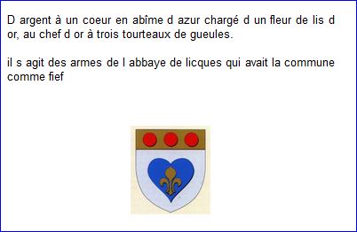 (1995) D'argent à un coeur d'azur chargé d'un fleur de lis d'or; au chef d'or chargé de trois tourteaux de gueules.