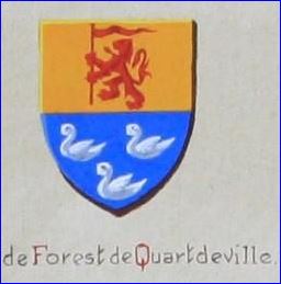 Coupé: au 1er d'or au lion de gueules tenant de ses deux pattes de devant une banderole du même, au 2e d'azur à trois merlettes d'argent.