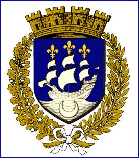 (1462) D'azur au vaisseau équipé d'argent flottant sur des ondes du même mouvant de la pointe, les trois mâts sommés chacun d'une fleur de lis d'or, les ondes chargées d'un croissant de sable.