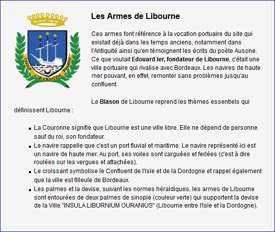 Devise: « insula liburnium duranius » (Libourne entre l'Isle et la Dordogne).