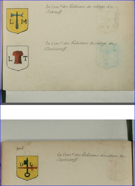 Les dessins des blasons sont exécutés par mes soins.