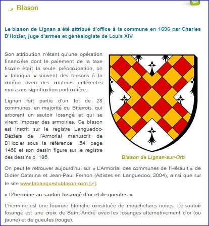 Blason sur le site de la commune, 2015.