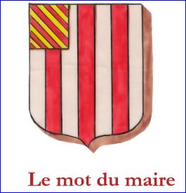 (1980) D'argent à trois pals de gueules ; au franc-canton coticé d'or et de gueules de douze pièces.