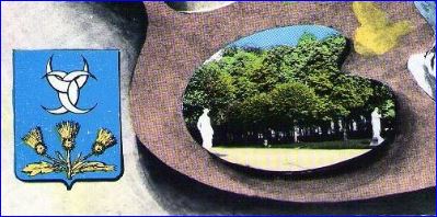 (1544) D'azur à l'entrelacs de trois croissants d'argent en chef et au chardon fleuri de trois pièces et feuillé de deux d'or en pointe.