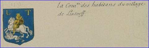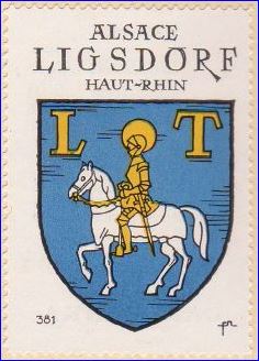 D'azur à D'azur à saint Georges d'or sur un cheval d'argent accompagné en chef des lettres capitales d'or, L à dextre et T à senestre.