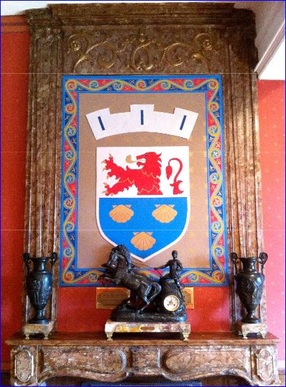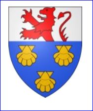 Coupé: au 1er d'argent au lion issant de gueules, armé et lampassé d'or, au 2e d'azur à trois coquilles d'or.