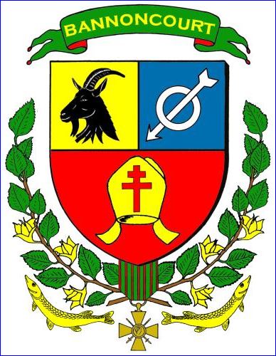 (2015) Coupé: au 1er parti au I d'or à la tête de chèvre arrachée de sable, au II d'azur à l'annelet d'argent traversé d'une flèche versée en barre du même, au 2e de gueules à la mitrte d'or chargée d'une croix de Lorraine du champ.