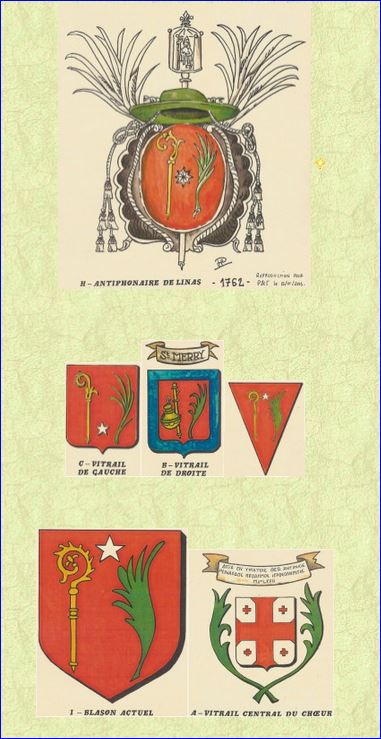 De gueules à la crosse d'or à dextre et à la palme de sinople à senestre, le tout accompagné en chef d'une étoile d'argent au point du chef.