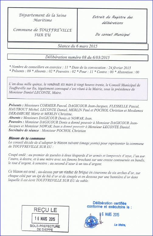 Extrait d'une délibération du 6 mars 2015 (1/2)