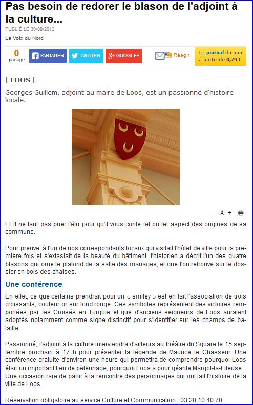 Article de presse La voix du Nord du 30 août 2012 (Site du journal).