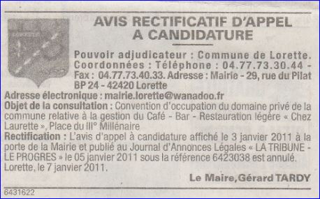 Annonce légale, journal Le Progrès du 12 janvier 2011.