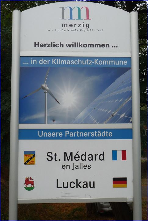 Panneau d'entrée de ville (jumelage) à Merzig (Allemagne).