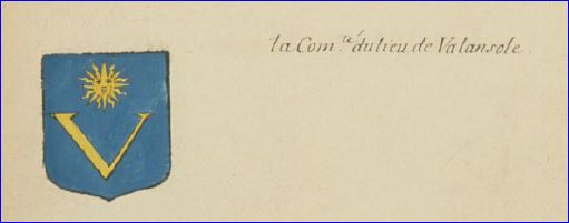D'azur à la lettre capitale V d'or, surmontée d'un soleil du même.
