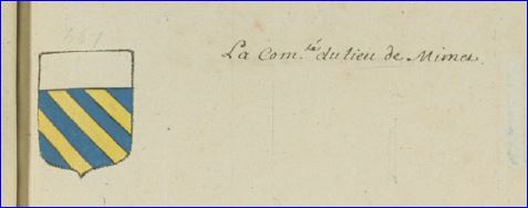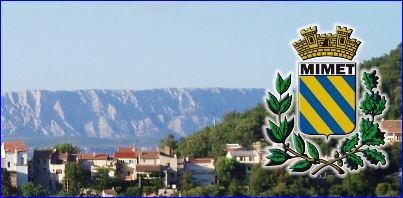 D'azur à trois bandes d'or; au chef d'argent chargé de l'inscription MIMET en lettres capitales de sable.