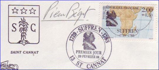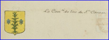 D'or à la canne feuillée de sinople sur un tertre de même, accostée des lettres capitales S et C de gueules; au chef d'azur chargé de trois étoiles d'argent.