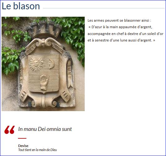 Devise: « In manu dei omnia sunt » (tout tient dans la main de dieu).
