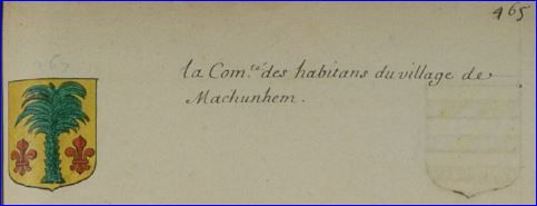 D'or au palmier de sinople accosté de deux fleurs de lis de gueules.